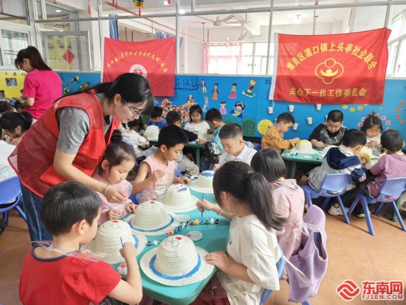 集美区盈盈幼儿园孩子们彩绘帽子(上头亭社区新时代文明实践站供图)