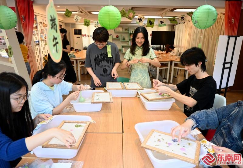 海内外学子体验制作花草纸(吴江辉 摄) |
