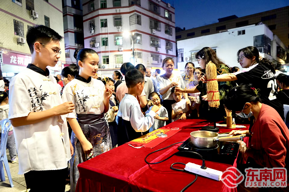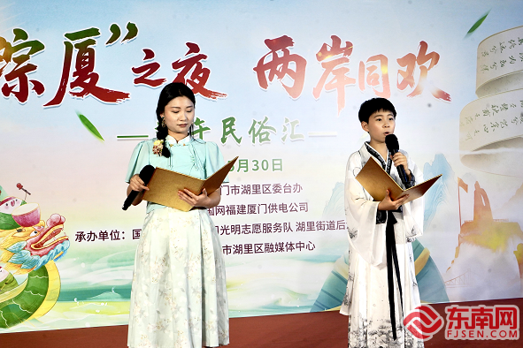 两岸青少年体验糖画民俗(主办方供图) 文化交融 共叙两岸同胞情 “五月节,扒龙船,阿公摇橹囝仔喊!”活泼可爱的孩子,用古早味唱腔演绎传统龙舟故事,拉开了活动的序幕。 随后,热闹的节目轮番上演——耳熟能详的歌曲《青苹果乐园》《亲爱的你啊》,展现了仲夏夜的独特青春活力;身着马面裙的孩子们用荡气回肠的朗诵《唐诗里的中国》展现了中华文化的壮阔恢宏;声情并茂的朗诵《屈原颂》,传递出屈原深沉的爱国情怀,激发孩子们内心深处的民族自豪感;台湾歌手凯文则献唱了闽南语经典歌曲《欢喜就好》,让现场观众不自觉地跟着哼唱,现场的气氛一度达到高潮。