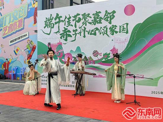 南音表演(东南网记者 夏菁 摄) 东南网5月31日讯(本网记者 夏菁 通讯员 童心悦)5月31日,端午佳节当天,厦门市翔安区欧厝社区文创艺术市集热闹非凡,“端午佳节聚嘉邻 赤子丹心颂家国”——翔安区2025年“我们的节日・端午”主题活动在此举行,为群众带来一场融合传统文化、两岸情谊与现代趣味的端午盛宴。 多元文化展演:古今交融的视听盛宴 此次活动在极具文化氛围的场景中拉开帷幕。屈原扮演者身着古装,在民乐伴奏下深情朗诵《离骚》选段,那抑扬顿挫的语调让大家深切感受到了屈原的赤子情怀。 在欧厝这片充满人文底蕴的土地上,台湾非遗传承人以传承南音文化为使命创办的南音传习中心,成为两岸文化交融的重要纽带。活动中,非遗南音的展示让观众沉浸在悠扬婉转的乐声中,领略传统艺术的魅力。与此同时,闽南童谣《五月节》以轻快的节奏和熟悉的乡音,带大家重温了闽南端午的独特民俗风情,勾起了几代人的童年回忆。充满活力的啦啦操《哈哈颂》则为活动增添了青春气息。 活动现场还进行了历史文化互动问答,“屈原是战国时期哪国人?”“最早的粽子产于哪个时期?”等问题引发了大家的积极参与,在趣味中传播了传统文化知识。 此次活动还充满温情关怀,现场举行了向道德模范代表赠送福粽的仪式,以传统美食与美好祝福表达对模范人物的敬意。另外,1000个爱心粽还被送至敬善养老院、残联康复训练中心、残疾人综合服务中心、启航学校以及道德典范、后滨社区少数民族代表、欧厝社区台青代表手中,传递了节日的温暖。 |