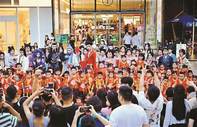 端午假期,我市商圈纷纷策划儿童节相关主题节目。图为湾悦城组织的“百吒巡游”活动。(记者 林铭鸿 摄)