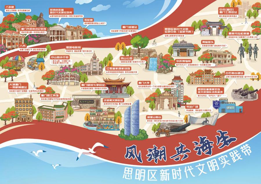 思明区新时代文明实践带手绘地图。新华网发(思明区委文明办供图) |