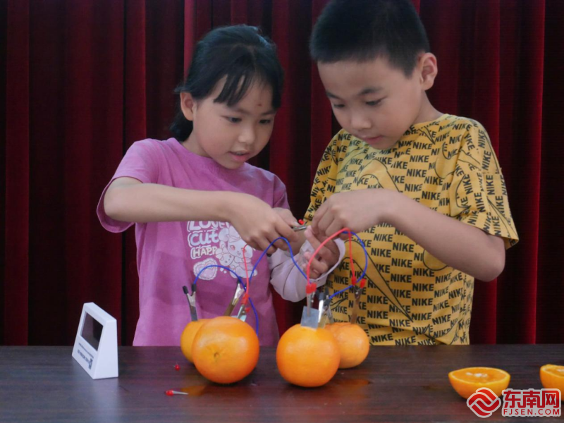 社区儿童青少年亲手搭建水果发电装置(集美区社区学院供图)