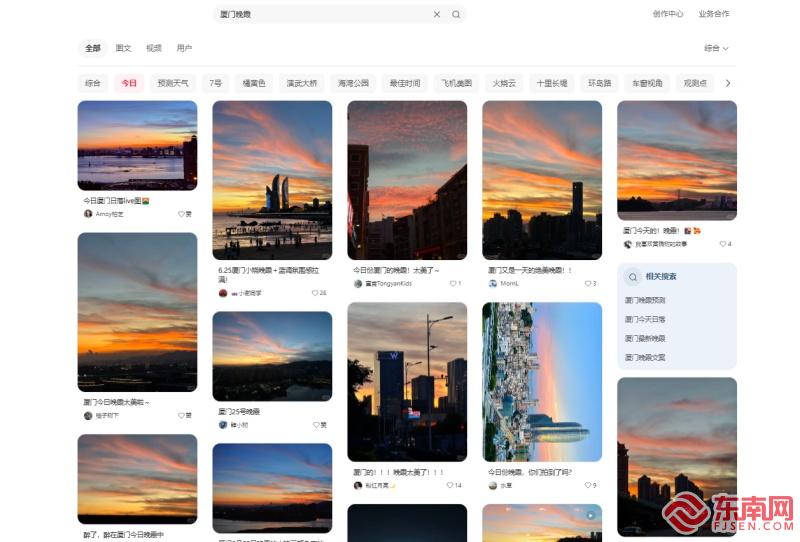 某社交平台上,众多网友纷纷晒出厦门晚霞摄影作品 |