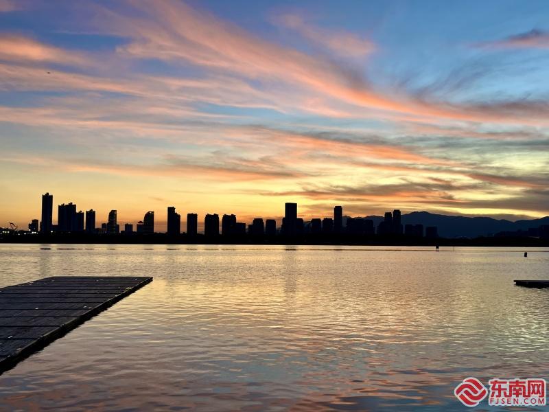 晚霞投射在水面上,波光粼粼。(东南网记者 李霖 摄)