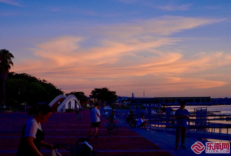 晚霞吸引不少市民游客驻足欣赏(东南网记者 李霖 摄)
