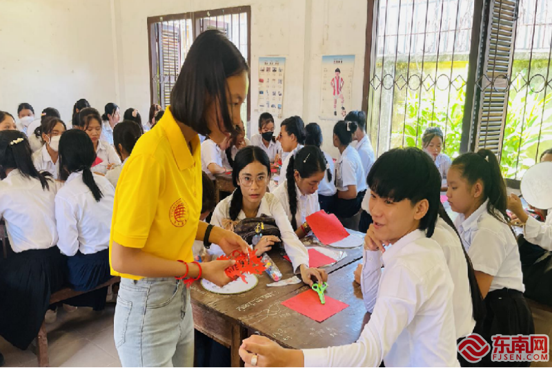顺金玉带领柬埔寨青少年体验中国剪纸(华侨大学供图) 化身点点星火 照亮交流合作之路 进入华侨大学华文学院,这里开放包容的侨校气质让顺金玉热血澎湃,她积极化身文化交流传播使者,服务文明交流互鉴。 她连续三年在柬埔寨中小学组织开展“华文星火”中华文化海外传播活动,带领当地学生体验书法、剪纸、扎染、武术等,在寓教于乐中了解“一带一路”倡议。“我希望能通过自己的努力让更多学生了解中国,热爱中华文化,以后也可以像我们一样来到中国留学,开拓视野改变命运,成为中柬交流的使者。” 在校期间,她还担任“海丝文化展”和“华文星火”展厅讲解员,弘扬海丝精神,讲述中华文化海外传播故事;在2023中国—东盟人文交流年开幕式、福建省庆祝第15个“联合国中文日”主题活动、2023世界华文教育大会等大型活动中作演讲,分享在华留学经历;参加各类公益服务活动,为各地中小学生介绍柬埔寨的风土人情,为他们打开了了解东盟国家的一扇窗。此外,她还曾多次协助厦门出入境管理局翻译相关资料,为在厦柬埔寨同胞提供服务。 值得一提的是,2023年12月,柬埔寨国王西哈莫尼访问福建期间,顺金玉和其他柬埔寨在华留学生受到接见,向西哈莫尼介绍了合作交流项目以及在华留学的学习成果。“国王陛下听后特别高兴,还嘱咐我们要更加珍惜在中国留学的学习机会,共筑中柬两国的‘铁杆友谊’。” |