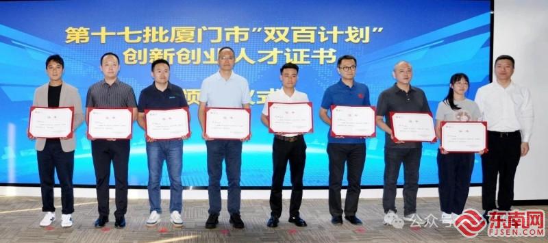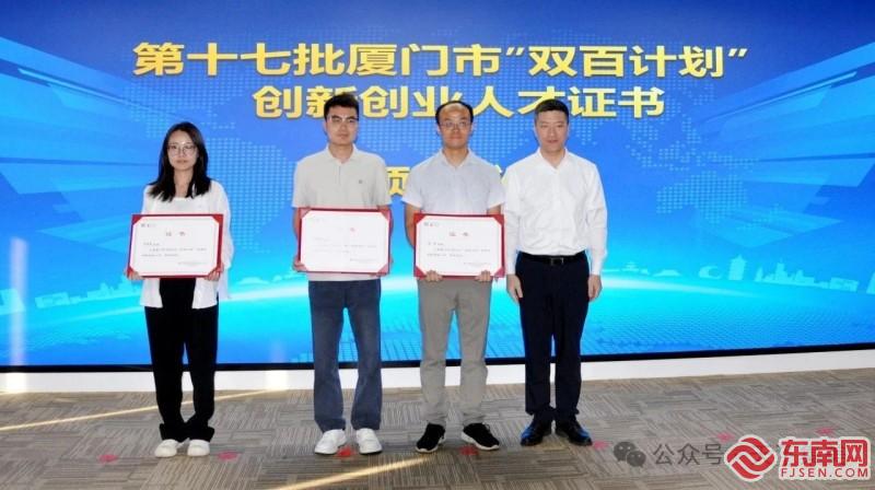 为市“双百计划”创新创业的优秀获奖代表颁发证书(集美两岸e家供图)