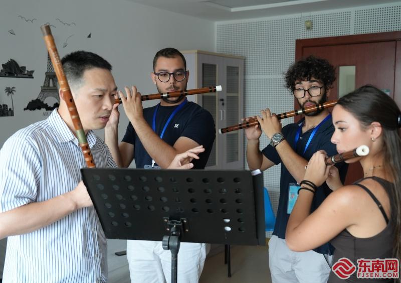 开营仪式现场(东南网记者 李霖 摄) 东南网7月3日讯(本网记者 李霖 陈淼淼 李奇)7月3日,“承露五洲·华侨大学2025国际暑期学校计划”正式启动。该计划首个活动——“意韵·青春:第十届中国音乐文化国际研修学院”当日在华侨大学厦门校区开营,来自意大利墨西拿音乐学院、美国高校音乐专业的近30名师生齐聚华大,开启在厦门、泉州的中国音乐文化研修之旅。 据介绍,“承露五洲·华侨大学2025国际暑期学校计划”是华侨大学落实《教育强国建设规划纲要(2024—2035年)》关于“扩大中外青少年交流,实施国际暑期学校”部署的重要举措,也是响应习近平主席“5年5万”和“3年1万,欧洲翻番”青少年来华交流倡议的具体实践,2025年将依托学院专业特色,举办面向欧美青少年的音乐、体育、建筑设计等系列来校交流项目,提升华侨大学开放办学水平,服务构建教育国际战略合作体系。 活动期间,师生们将通过中国乐器体验、音乐会、文化研修与实地参访等形式,体验中国音乐和中华文化的魅力,让东西方文化在青年手中交融传承。 “音乐是一门共同的语言,人们可以通过它分享交流,即使乐器不同,但音乐是共通的。”意大利墨西拿音乐学院教授朱塞佩·费德里科·科尔皮纳表示,对于有机会能演奏中国传统乐器,学生们都感到欢欣雀跃、兴致盎然。在交流活动中,他们得以与更多人交流,深入了解历史、传统,这既是一个相互学习的经历,也是一次展示音乐才能的过程。 意大利墨西拿音乐学院学生塞布丽娜说,能够通过这次活动,了解中国的音乐、文化,感受到中国的不同,尝试各种中国的乐器,“这将是一次难忘的机会,永远铭刻在我们心中。” “我相信通过这次活动能够很好地传播我们中国的传统文化,让更多欧美的青年人更了解中国。”音乐舞蹈学院教师周苑媛告诉记者,学员们除了将分小组学习阮、笛子、笙、箫、唢呐、古筝等中国传统乐器,还将了解闽南语、南音,走进“海上丝绸之路”重要起点泉州参观考察。 值得一提的是,此次研修的结业汇报将以音乐会形式呈现。届时,音乐会将分为三大篇章,华侨大学、意大利墨西拿音乐学院等师生分别献上各自的“拿手好戏”,中外师生还将合作演绎多首经典曲目,并创新性地融入闽南元素,打造一场跨越国界的音乐盛宴。 本次活动由教育部中外语言交流合作中心、中央音乐学院联合主办,华侨大学音乐舞蹈学院、中央音乐学院音乐孔子学院联合承办。