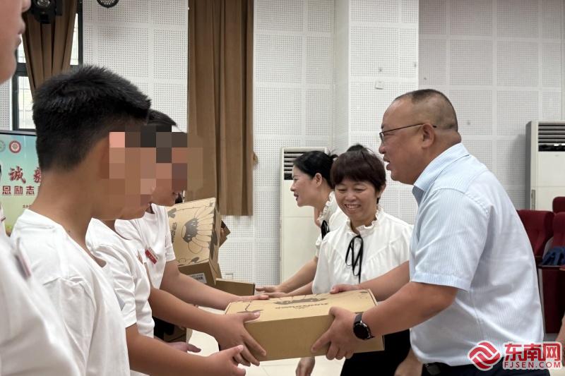 为全体营员颁发开营礼包(东南网记者 李霖 摄)