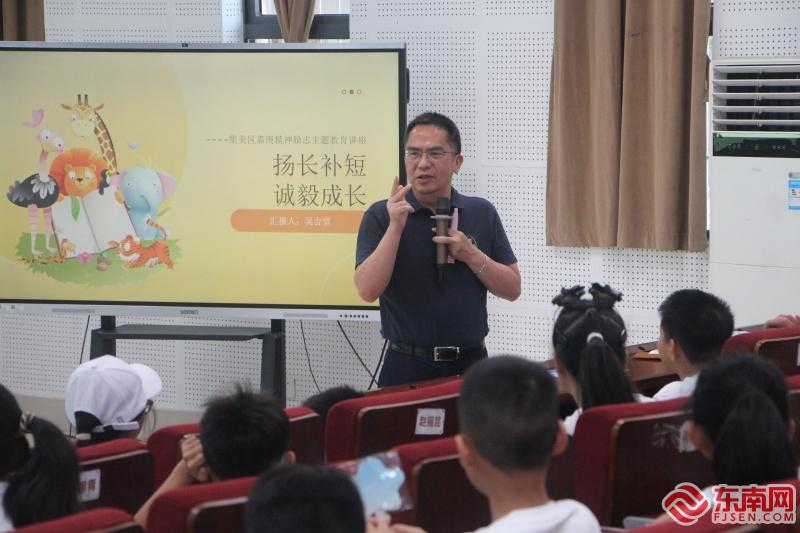 集美区第二届“诚毅之爱”感恩励志教育主题夏令营授旗仪式(主办方供图) 东南网7月8日讯(本网记者 李霖)7月8日上午,集美区第二届“诚毅之爱”感恩励志教育主题夏令营在窗内小学正式开营。来自厦门市集美区义务教育阶段五、六年级的35名家庭经济困难学子共同开启为期三天的成长赋能之旅。 开营仪式上,集美区教育招生考试中心、集美区学生资助中心主任曾莠瑄深情致辞。他高度赞扬学子们在逆境中展现的坚韧品格与求知渴望,“暂时的困难赋予你们超越平凡的坚毅,这份在有限条件下依然对知识如饥似渴的精神,本身就是最珍贵的人生财富。”曾莠瑄表示,本次夏令营是对这份坚韧的真诚回应,不是一场普通假期活动,而是一次“温暖的同行、能力的充电、视野的开拓与心灵的赋能”,旨在助力学子推开认知世界的新窗,汲取前行动力。 据悉,活动紧密围绕“诚毅”精神内核,精心设计了丰富多元的体验课程:聆听专家讲述陈嘉庚生平与党史光辉历程,厚植家国情怀,感悟精神丰碑;在闽南童玩中沉浸式感受集美深厚文化底蕴,传承本土文化;体验“AI+教育”创新科技,亲手制作航模,点燃科学梦想,走进知名高校研学基地,开阔眼界,拓展成长边界;参与团队运动、五育挑战,在协作中强健体魄,磨砺品格。 现场,集美区教育招生考试中心副主任、区教育基金会副理事长兼秘书长吴连加将营旗郑重授予助教队长,宣告夏令营征程正式开启。随后,领导们为全体营员颁发开营礼包,传递关爱温暖。窗内小学党支部副书记、副校长吴凤梅带领营员们走进校园,详细介绍了营地情况和安全注意事项,为营员们的平安旅程保驾护航。 夏令营第一课邀请集美区委宣传部部务会成员、一级调研员吴吉堂开讲。他以“诚毅”二字的由来说起,根据陈嘉庚先生“葆真养正”的幼教理念,带领营员们通过AI测评了解自身优缺点,鼓励他们学会“扬长补短 诚毅成长”。吴吉堂寄语孩子们:“要树立成长型思维,坚持成长,诚毅前行,成就更好的自己。努力把自己活成一束光,依靠自己,照亮别人。” 集美区教育招生考试中心相关负责人表示,第二届“诚毅之爱”夏令营以爱心为桥,以“诚毅”为帆,旨在为身处逆境的学子搭建起眺望广阔世界的平台,为期三天的夏令营融合感恩教育、文化传承、科技探索与实践砺炼的旅程,将在孩子们心中播下希望的种子,助力他们以更坚定的步伐,书写属于自己的励志篇章。 本次夏令营由集美区教育招生考试中心、学生资助中心及集美区教育基金会联合主办,窗内小学协办,集美区欣立社工服务中心承办。