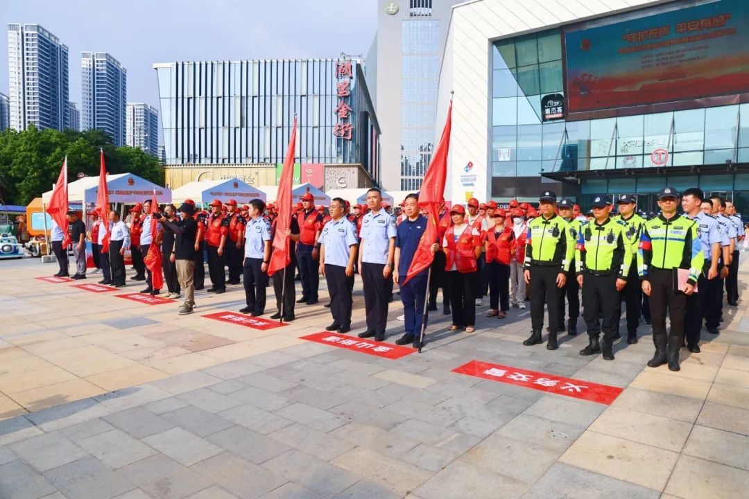 平安湖里,新起点上,再出发! 4日下午 “守护无声 平安有感” 平安建设宣传活动暨群防群治 队伍授旗仪式在湖里万达广场举办 全区五个街道百余名群防群治队员 与义务交警队员装束齐整,齐聚现场 “志愿红”“交通绿”成为主场色系 “平安”成为现场市民口中的高频词 群防群治队伍和平安志愿者 是新时代社会治安防控力量的重要组成 是公安机关维护社会稳定 守护群众安宁的“左膀右臂”