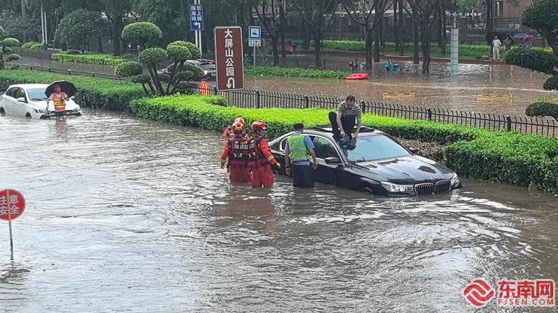 厦门:暴雨致多处积水 消防人员营救疏散49名被困群众