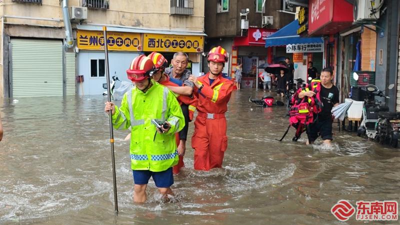 厦门:暴雨致多处积水 消防人员营救疏散49名被困群众