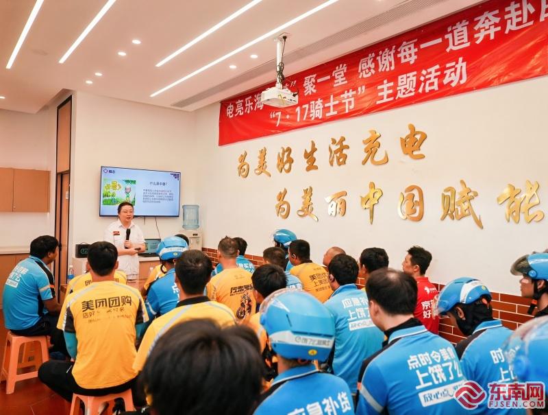 厦门120急救中心专业人员为外卖骑手讲授防暑知识(主办方供图)