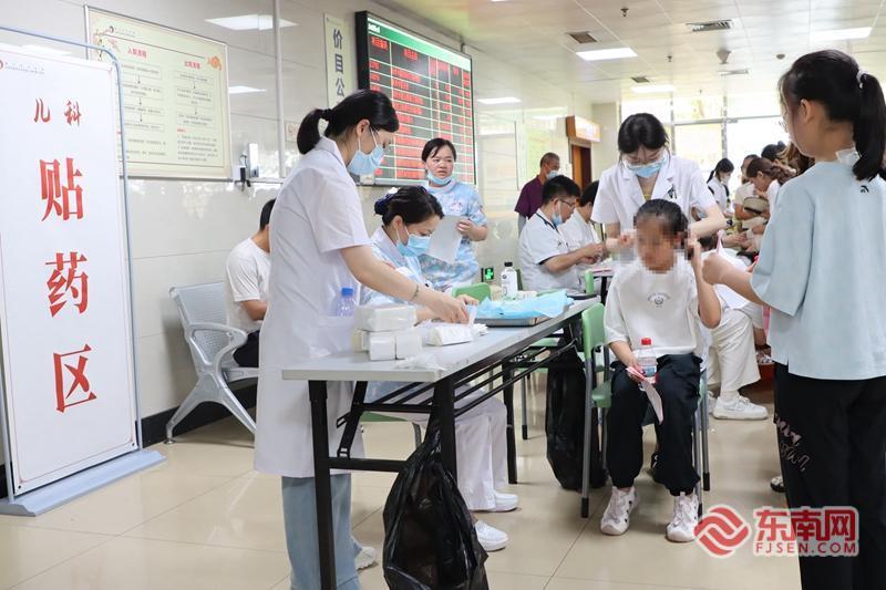 在儿科贴药区,医务人员为孩子贴三伏贴 东南网记者 刘学佳 摄
