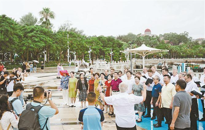 巴托克·贝拉男声合唱团在钢琴码头演出。(记者 林铭鸿 摄) 厦门日报讯(记者 朱道衡)昨日,第六届鼓浪屿音乐季迎来一群“不速之客”——匈牙利国宝级的巴托克·贝拉男声合唱团。他们带着多瑙河的酒香与歌声,用音乐快闪,让鼓浪屿本届音乐季绽放出跨越山海的艺术火花。 上午10时许,在钢琴码头广场,刚下渡轮的匈牙利歌唱家们便带来惊喜——身着蓝色“围裙”的合唱团成员手举红酒杯,用一曲《祝酒歌》拉开音乐快闪的序幕。独特的匈牙利民间旋律伴着海浪声,仿佛将匈牙利酿酒作坊的欢腾场景,搬到鼓浪屿码头边。 一曲终了,掌声尚未平息,熟悉的《我和我的祖国》旋律悄然响起。这次,他们改用略显生涩却无比真诚的中文演唱。市民游客纷纷驻足欣赏,部分观众索性加入合唱,原本分散的人群渐渐聚拢,形成临时合唱团。 “看我们的围裙,这是匈牙利酿酒人的传统装束,现在成了合唱团标志。”合唱团指挥劳可内·托马斯展示特色服装,围裙上绣着葡萄藤图案。他说,为了这次中国之行,团员们特意学了中文歌曲,“想让鼓浪屿朋友们听到不一样的问候”。 这群带着酒香而来的歌者,在八卦楼续写惊喜。聆听过“诺曼·比尔”管风琴的空灵回响后,他们仰望这栋百年建筑的红色穹顶,唱起《葡萄酒中的真实》。醇厚的合唱声与穹顶的回声交融成美妙的混响。在鼓浪屿管风琴艺术中心,他们被亚洲最大的管风琴“卡萨翁700号”浑厚庄重的琴声震撼,再度高歌一曲。 “其实,我们是不速之客。”劳可内·托马斯揭开这次与鼓浪屿邂逅的秘密:原本,他们是来北京参加中国合唱大会,偶然听闻鼓浪屿音乐季,特意调整行程,“我们参加过世界各地的音乐节,鼓浪屿非常独特,刚踏上岛,就感受到这里浓厚音乐氛围,观众热情互动,歌唱得也很好”。 “在厦门,我们拿过金奖,这座城市是我们的幸运地。”劳可内·托马斯说,早在2006年,他们第一次来到厦门,参加第四届世界合唱比赛,一举夺得男声合唱团金奖。2016年,他们应邀来厦门的闽南大戏院演出。在他看来,合唱团与厦门有特别的缘分,促成了他们本次鼓浪屿之行。 从钢琴码头的市井欢歌到管风琴的庄重共鸣,从《祝酒歌》的民族风情到《我和我的祖国》的共情合唱,这支匈牙利合唱团用歌声证明:音乐是无需翻译的共通语言,而鼓浪屿,正是这场跨文化对话的完美舞台。 花絮 暴雨促成一场“餐厅音乐会” 昨日中午,一场暴雨困住了巴托克·贝拉男声合唱团的脚步,却意外催生出一场充满烟火气的“餐厅音乐会”。 刚结束上午的演出,合唱团成员们走进鼓浪屿一家餐厅。闽南特色美食让这群远道而来的歌者食指大动。窗外突然雷声大作,暴雨突袭。 “既然走不了,不如唱歌吧!”不知是谁提议,合唱团成员们立刻响应。大家端起茶杯当酒杯,《举起杯子》美妙合唱瞬间响彻餐厅二楼。在二楼用餐的食客纷纷举起手机、相机,记录这突如其来的惊喜。 紧接着,合唱团成员、匈牙利国家歌剧院男高音主唱霍尔瓦特·伊斯特旺拉起手风琴,琴键跳跃间,他的妻子尤莉安娜·琴卡——这位同样来自国家歌剧院的女高音,唱起了匈牙利歌剧名曲。一楼用餐的食客们也循声涌上楼梯,把二楼大厅挤得满满当当。 “原来觉得被暴雨困住是遗憾,现在看来是最好的安排。”在合唱团指挥劳可内·托马斯看来,这场“餐厅音乐会”比正式演出更有趣。 |