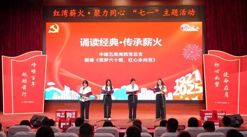 图:中建五局海西党总支朗诵《筑梦六十载 红心永向党》。(主办方 供图) 为庆祝中国共产党成立104周年,6月30日,“红湾薪火 聚力同心”七一主题活动在厦门市图书馆集美新馆报告厅举行,来自杏林湾区的150余位党员群众齐聚一堂,以声为笔、以情为墨,重温峥嵘岁月,再续红色华章。 此次活动由区委组织部、区委社会工作部指导,区财政国资直属党委、杏林街道党工委主办,厦门市图书馆党总支、万舜公司党总支协办。 现场,全体党员肃立,高举右拳,重温入党誓词,表达对党的忠诚、对人民的赤诚。莲亭社区“想唱就唱”合唱团演唱《党啊,亲爱的妈妈》,以饱满的热情演绎了对党的深情厚谊。 随后,中建五局海西党总支、厦门市图书馆党总支、万嘉清水党支部等单位分别以《红色的传承》《筑梦六十载 红心永向党》《读中国》为题,带来了精彩的红色诵读表演,用声音诉说红色血脉的延续,用文字传递对祖国最深情的告白。3位湾区国企的党员代表分别结合自身经历,分享了党建如何深度融入业务的“毛细血管”,以及在新时代新征程中如何有效激活国企发展的“红色动能”的故事。 为响应市委社会工作部等部门联合制定的《厦门市新就业群体友好社区建设工作指引(试行)》,杏林湾商务营运中心党委积极行动,联合辖区商户共建“友好湾区”,打造暖“新”商户,为外卖、快递等新就业群体提供免费饮水、休息、手机充电等一系列贴心便利服务。现场,为首批暖“新”商户进行了授牌。 “这是一个回顾光荣历程,缅怀先辈功绩,展望美好未来的重要时刻,更是我们全体党员重温初心、坚定信念、凝聚力量的庄严聚会。”杏林湾商务营运中心党委书记、区财政局副局长陈银华致辞表示,今后,将围绕“引领凝聚 服务拓展”的工作思路,不断深化“红动湾上”党建品牌,不断创新服务模式,提升服务质量,为湾区企业的发展和员工的成长提供更加全面、精准的支持。(记者 吴觅亮 通讯员 苏淑芬 来源:集美报) |