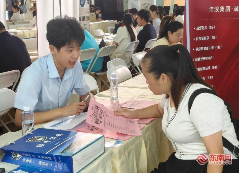 企业招聘负责人向求职者介绍岗位情况(东南网记者 李霖 摄)