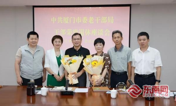 老干局为两名机关干部举办荣誉退休仪式(厦门市老干局供图) 温情回眸,共话难忘岁月 仪式现场通过精心制作的微视频,重温两位新退休干部几十年来兢兢业业的奋斗岁月,一个个难忘瞬间展现了老干部工作者讲政治、讲奉献的品质和底色,再现了厦门老干部工作守正创新、不断提升的发展历程。座谈中,干部职工深情回顾,共叙和两位退休干部并肩奋斗的难忘经历,退休干部畅谈体悟,感谢组织的栽培和同事的深情厚谊,青年干部真挚致敬,表示将传承优良作风、接续奋斗奉献。 致敬芳华,传递组织温暖 活动简朴温馨、暖意融融。仪式现场为两位退休干部送上"五个一"的温暖关怀:一本承载组织肯定的《退休证》;一套记录奋斗点滴的定制影集;一册银龄启程的服务指引;一份寄托祝福的退休纪念品;一束表达敬意感谢的鲜花。走心又暖心的仪式,凝聚着情感、传递着温暖,体现了对退休干部多年来辛勤付出的肯定与关怀。