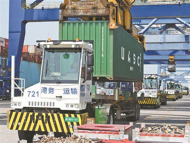 牵引车进入码头运输集装箱。 (记者 卢剑豪 摄) 厦门日报讯(记者 谢嘉迪 通讯员 林婵)近日,厦门港迎来40台全新纯电动牵引车,至此,厦门港务运输有限公司在港纯电动牵引车规模达到120台,电动化率超过50%,港口绿色转型进程再度刷新。 此次交付的40台纯电动牵引车由本土企业厦门金龙联合汽车工业有限公司生产,其中,23台投放于嵩屿码头,17台投放于国际货柜码头。该批车辆专为港口高强度作业环境设计——搭载了宁德时代长航时高性能电池,针对码头载重量大、连续作业需求进行了专项优化,最大允许牵引质量达70000千克。 厦门港务运输有限公司总经理黄沧平表示,此次新增的40台纯电设备是持续践行绿色发展的重要举措,计划今年下半年再引入30台,逐步实现车辆电动化全覆盖。 据悉,作为全国商用化纯电动牵引车的推动者,厦门港务运输有限公司于2019年率先布局绿色港口建设,积累了丰富的纯电车辆管理经验。2024年数据显示,投用的80台纯电动牵引车全年可节约1600吨标准煤,减少约5000吨二氧化碳排放。随着新一批车辆的投用,节能减排效果将进一步提升。 “港口是物流枢纽的核心节点,更是绿色发展的前沿阵地。”黄沧平表示,将持续提升绿色设备占比,通过科技赋能推动绿色转型,为厦门港打造“零碳港口”提供强劲支撑。 |