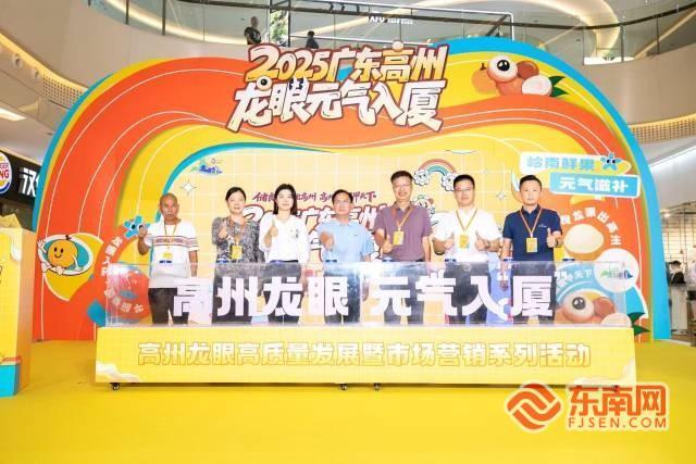 “高州龙眼 元气入‘厦’”品牌推介活动启动(主办方供图) 东南网8月7日讯(本网记者 文洁)大暑节气一过,广东高州的龙眼便开始大量上市。一场甜蜜全城的品牌推介活动在厦门举办,来自广东高州各镇街精品储良龙眼,吸引了福建70余家主流采购商携订单到场。 高州市人民政府副市长熊辉武表示,此番推介希望让厦门朋友们品鉴新鲜甜美的储良龙眼,感受高州桂圆干、龙眼膏等精深加工产品的独特养生魅力。 为了强化龙眼的功效认知,活动现场特意安排了非遗手作龙眼四果汤品鉴环节。厦门四果汤传承人以高州鲜龙眼肉入馔,融合石花膏、仙草等本地特色,让消费者在舌尖上体验“闽粤共赏”的药膳魅力。