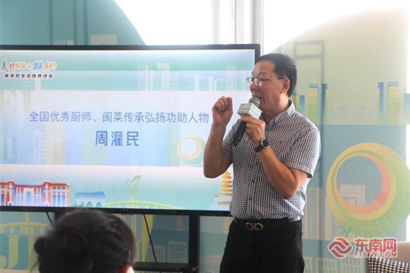 全国优秀厨师、闽菜传承弘扬功勋人物周灌民作分享(东南网记者 李霖 摄)