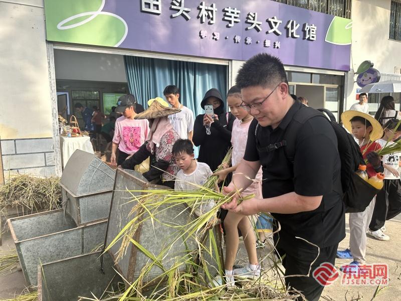 在农耕达人的指导下,小朋友体验割稻子(主办方供图) 东南网8月12日讯(本网记者 李霖 通讯员 高雅琦)割稻、抓鱼、制芋点……日前,集美“厦乡趣”——乡约集美·米韵丰年活动在厦门市集美区灌口镇田头村举办。市民游客在稻田里体验收割、品鉴芋香米,沉浸式体验丰收的喜悦与农耕的魅力。 活动以“芋香”“米韵”为主线,设置品鉴、体验、展销三大板块,深度串联农耕产业与文旅体验。田头村芋头文化馆中,讲解员讲述田头芋头的零星栽种到如今规模化培育的发展历程,让参与者在触摸历史、感知文化中,理解这份乡土物产背后的传承与匠心。 在米质对比体验区,市民游客依次品尝,仔细分辨不同大米的口感与香气差异;在专业讲解员介绍下,进一步了解芋香米。田间体验区,亲子家庭在农技人员的指导下体验收割、打稻谷;参与者们挽起衣袖、踏下田埂抓鸡、抓鱼,在追逐与捕捉的乐趣中感受农耕生活气息。 揉面、包馅、塑形……活动邀请美食达人现场教学,并邀请市民游客DIY芋头点心。除了集中陈列了田头芋香米及仙景芋系列深加工产品,活动还设置供应链洽谈区,吸引不少商户到场洽谈。 此次活动由集美农业发展有限公司主办,通过“文旅体验引客来、农产消费助农富”的闭环设计,让田头村的丰收场景化为鲜活的文旅资源,让农产品从田间直接走向餐桌,形成“文旅引客、农产增收、乡村振兴”的良性循环。