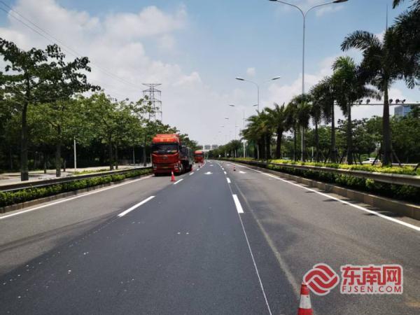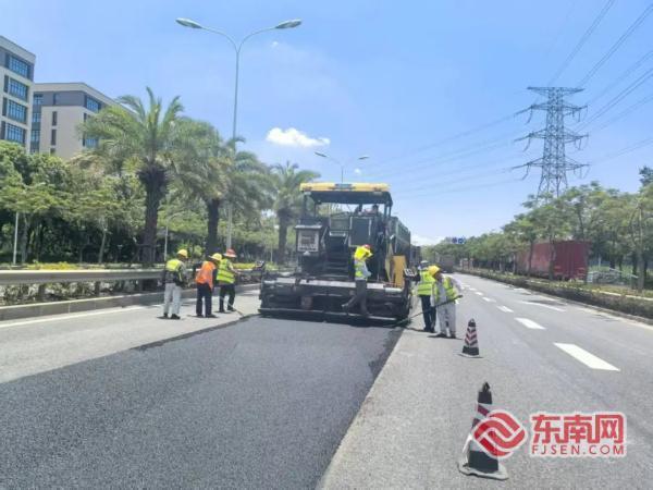 公路部门对海翔大道部分路段进行修复(厦门公路中心供图) 东南网8月13日讯(记者 刘玮 通讯员 柯丽清)近日,厦门市交通局公路中心海沧公路部门组织对海翔大道部分路段进行集中修复,通过规范化施工完成沥青路面修复,进一步提升道路通行品质,为市民营造更加平稳、安全、舒适的出行环境。 随着使用年限增长,海翔大道交通繁忙路段在车辆荷载和自然因素共同作用下,路面出现了裂缝、下沉等问题。为保障道路安全,海沧公路部门迅速组织修复,提前制定施工方案并严格落实安全生产要求。 施工现场,铣刨机、摊铺机、压路机等大型机械设备有序作业,施工人员分工协作,形成高效联动。为减少对交通的影响,作业人员围挡封闭作业区域,并设置车辆引导牌、安全警示锥等设施,引导车辆有序通行,既保障了施工安全,又最大限度降低了道路施工对市民出行的影响。