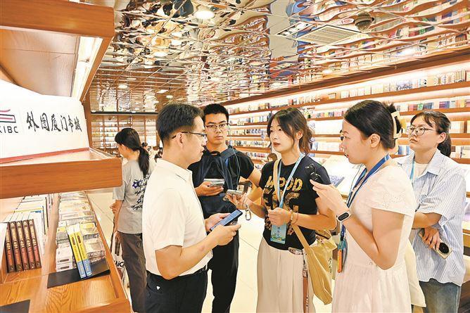采访团在外图厦门书城采访莲兴社区与外图书城共建情况。