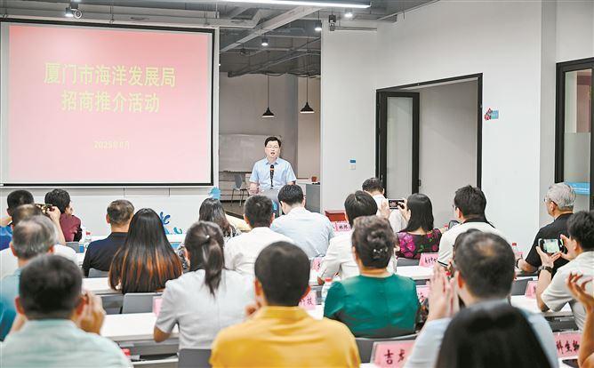 市海洋发展局举办的招商推介活动现场。 厦门日报讯(文/记者 王元晖 图/记者 林铭鸿)强大的潮汐带着碧浪冲刷沙坡尾的堤岸,不远处的厦门海洋经济公共服务中心,人们也从一页页推介材料中感受到汹涌而至的“蓝色经济”浪潮。昨天下午,市海洋发展局在这里组织举办招商推介活动,解读政策、座谈交流、参观对接,每一个环节都在传递着海洋经济推动厦门高质量发展的强劲动能。 因海而生、向海图强,如今承载着新时代海洋使命的厦门,沿着“要推动厦门加快建设全国海洋经济发展示范区,做大做强海洋经济”的方向,全力构建“陆海统筹、创新驱动”的现代海洋产业体系,海洋经济已成为厦门经济发展的重要引擎。 市海洋发展局党组书记、局长王宇在昨日的招商推介活动中表示,厦门正通过实施“五个一”招商服务,建立全员招商机制,深化“以商招商”,用广阔的发展空间、完善的产业配套、优厚的政策支持和优质的营商环境,全力打造全球海洋产业投资的“蓝海”。市海洋发展局也已备好“政策礼包”、搭好“产业舞台”、铺好“服务轨道”,诚邀世界各地的涉海企业来厦共同书写“蓝色经济”新篇章。 齐聚一堂 政银企携手推动海洋优质项目招商 尽管招商推介活动在室内举行,但人们还是从破窗而入的习习海风中,触摸到了当前厦门海洋经济发展的强劲脉动。参加昨日活动的,除了市海洋发展局、厦门临空经济片区指挥部海洋高新区专项工作组、厦门火炬集团创业投资有限公司、中国光大控股有限公司相关负责人之外,还有数十家涉海企业的代表。 此次招商推介活动,距离第二十五届投洽会的召开仅有10天左右的时间,而两个多月后,2025厦门国际海洋周也将接踵而至。招商推介,在当前厦门海洋经济发展中,被摆在尤为重要的位置。 市海洋发展局明确提出了新形势下的招商路径:全力推进全国海洋经济发展示范区和厦门海洋高新技术产业园区的建设,依托厦门海洋高新技术产业园区等载体,借助厦门国际海洋周等平台,谋划和推动一批海洋优质招商项目签约落地。 不可否认,迈入首批全国海洋经济发展示范区,让如今的厦门在海洋优质项目招商方面,有了前所未有的底气。目前,我市已初步建成特色鲜明的现代化湾区、国家海洋高新技术产业、海洋生态文明展示窗口,以占全省0.25%的海域面积,创造了全省20%的海洋生产总值。同时培育了海洋龙头企业30家,涉海上市企业15家,以海洋生物医药、海洋高端装备等为支撑的海洋新兴产业体系已经形成。此外,还获批并启动海洋负排放国际大科学计划,挂牌成立福建省海洋科学与技术创新实验室,建成全球最大的深海微生物菌种库。而在2024年,全市海洋生产总值预估超2580亿元,占到全市GDP的30%。 海洋创新链与产业链在一次次的同频共振中,快步走向深度融合,让昨日活动的参与者兴奋不已。在市海洋发展局搭建的这个舞台上,政银企齐聚一堂,共同开启“蓝色经济”的无限可能。 |