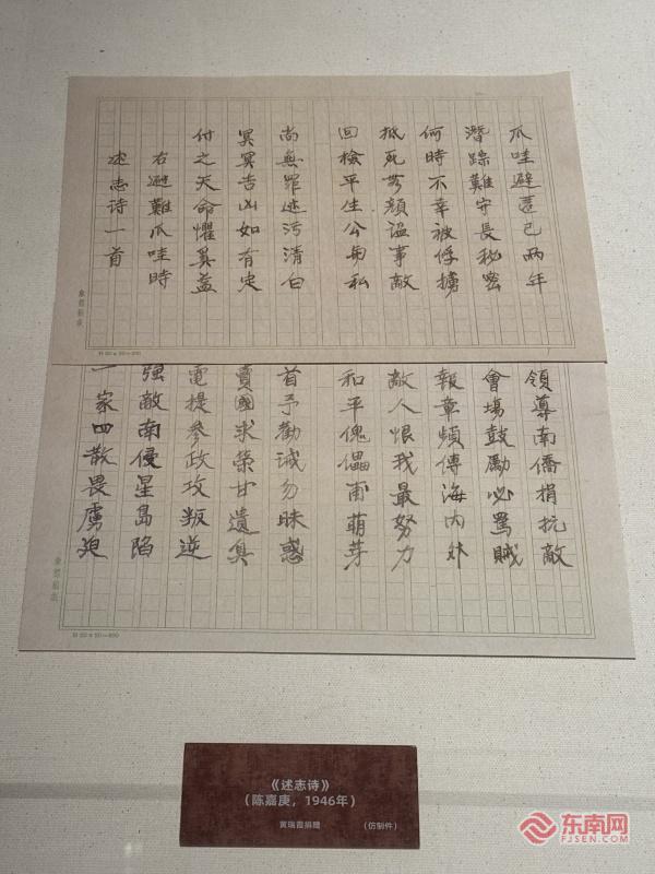 陈嘉庚在避难期间写下的《述志诗》(东南网记者 李霖 摄)