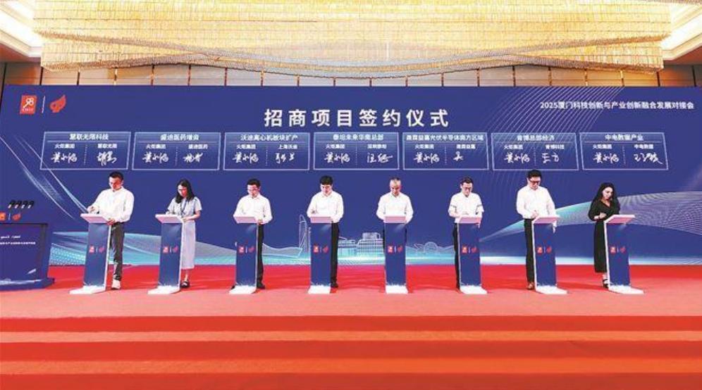 产创融合 落地生“金” ●2025厦门科技创新与产业创新融合发展对接会昨日举行 ●活动由火炬集团承办,40个项目集中签约,总签约额超118亿元