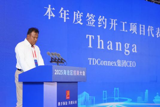 TDConnex集团CEO Thanga 海沧区政府给予了我们很大支持,不仅成立了招商服务专班,在我们提出租赁厂房的需求后,仅用两周就尘埃落定。这个项目从正式对接到完成厦门市级用地出让流程仅用时45天,开工到投产预计将用时不到4个月,这给予我们极大的信心在海沧区发展壮大。 此外,为了抢抓厂房配套设施建设,海沧区政府每周内多频次组织召开项目调度会议,协调解决困难,这让我们印象深刻。 良好的营商环境是企业成长的热土,也是海沧高质量发展的坚实保障。海沧区招商团队用动人的话语真实讲述“海沧和我们的故事”,同与座企业共同感受海沧的营商环境与企业服务的温度。