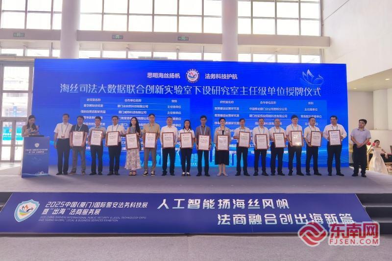 活动现场集中展示五项创新成果(东南网记者 刘玮 摄) 五大重点项目揭牌 现场集中揭牌的五大重点项目分别为: 法治影视展馆暨“法治盛典”影视孵化平台:由中国广播电视社会组织联合会等国家级机构指导支持,全国首个融合“金砖”与“金鸡”元素的法治影视平台。项目通过创新影视协拍与审核机制,吸引影视企业聚集,助力法治宣传、企业出海及文旅融合发展。 厦门市商事调解协会:全国首家由中级法院、海事法院共同指导,福建省首个专业商事调解行业组织,致力于解决贸易、投资、金融等多领域商事争议,推动行业自律与涉外法律服务能力提升。 金融智慧审判研究中心:由厦门金融司法协同中心与海丝智慧司法物证工程实验室共建,采用“技术+审判”深度协同模式,推动智慧司法技术在金融审判、风险识别和规则探索中的应用,提升审判质效,打造辐射海丝的金融司法智慧引擎。 法务科技赋能综治中心建设孵化创新示范基地:由中国司法大数据研究院、国家政法智能化技术创新中心作为指导,由海丝司法大数据联合创新实验室和国家政法智能化技术创新中心东南分中心共同发起,通过构建“1+1+2+N”的示范标杆,旨在全面提升社会治安综合治理的智能化、精细化水平,进一步落实中央政法委在厦门召开的推进社会治安综合治理中心规范化建设现场会精神,以人工智能等现代化科技助力综治中心建设。 AI近邻社区平台:由太初合一公司与海丝实验室联合孵化,融合AIoT与多模态技术,基于“云边端”架构为社区提供智能治理、安全防控和数据决策支持。采用“前端免费+后端增值”创新模式,构建可持续智慧社区生态。 此次系列项目的集中亮相,充分彰显了思明示范区在构建涵盖法律服务、科技赋能、产业融合、文化传播“四位一体跨界融合”的法务发展新格局,更标志着其在央地协同发力、着力打造全国一流法律服务高地的新征程。