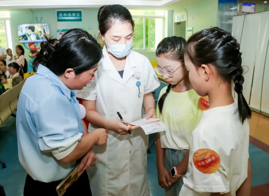 接种现场,企业代表向母女们传递了象征“科技守护” 的“健康钥匙”。