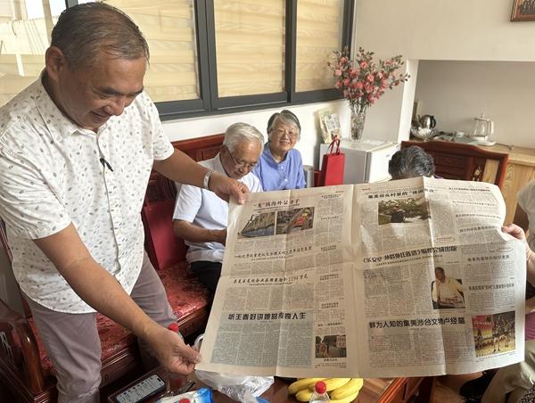 王合山(左一)展示当年《集美报》的报道。 暮年重逢 跨越岁月长河 8月31日,当王合才带着妻子和弟弟走进集美爱欣老年公寓时,等候在此的王春好早已笑意盈盈,眼眶里闪烁着期待的光芒。“盼了这么多年,终于等到了。”她的声音虽因早年手术有些嘶哑,却难掩激动。两位老人拉着手细数家族往事,从祖辈下南洋的艰辛,到各自生活的点滴,时而开怀大笑,时而轻声叮嘱,仿佛要将数十年的空白一一填满,每一句话里都透着血脉相连的亲近。 王春好特意拿出珍藏的画册和书信,其中既有她在老年大学的国画作品,也有原新加坡总统王鼎昌(王春好堂侄)生前寄来的鼓励信。“王鼎昌总统1998年回家省亲,是我经过多番了解、落实,并将族谱寄至海外证实亲缘后,帮他寻到了根。”王春好笑着说,自己退休后最大的心愿就是让散落在海外的亲人“认祖归宗”,如今又了却一桩心事。 侨乡有情 安放无尽牵挂 这场跨越山海的团圆,不仅是一个家庭的喜事,更彰显侨乡集美对海外游子的深情。从2010年报道埋下的 “种子”,到集美报社、集美区侨联等多方多年来的牵线搭桥,再到疫情防控期间的线上关怀,集美以细腻的人文关怀,为离散亲人搭建起重逢的桥梁。 “集美是侨乡,更是无数海外游子的‘根’。” 集美区侨联主席陈群英表示,王春好与海外亲人的重逢,是集美“以情聚侨、以心联侨”的生动写照,未来将继续做好侨胞服务,让更多跨越时空的亲情在这里圆满。 在寻亲见面畅叙后,陈群英等侨联工作人员还陪同寻亲团参观集美新城体验馆,俯瞰厦门全景、集美美景,通过视频与实景对比感受集美实践跨岛发展的精彩历程。王合才一行不时驻足,举起手机记录眼前景象。他感慨道:“家乡真美!我要把这份跨越山海的亲情与家乡新貌,带回新西兰和马来西亚分享给其他海外亲友,让更多族人看见故土的今昔变迁。” 王合才一行计划在集美停留至9月9日,除陪伴王春好细数家族过往、共享团圆时光外,还将走访后溪老家、集美中学等承载家族记忆与王春好成长足迹的地方,同时走进集美学村、集美鳌园和陈嘉庚纪念馆等地,感悟嘉庚精神和侨乡风情,在历史与当下的交融中,见证更多跨越岁月的亲情印记与家乡变迁。(文/记者 冯立东 图/陈季玉 来源:集美报) |