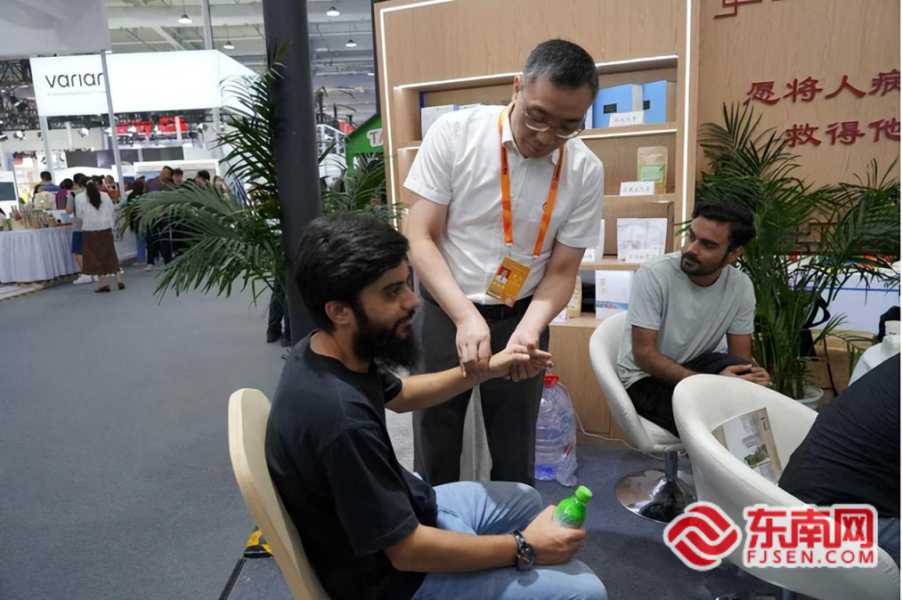 外宾参观者体验中医推拿手法(厦门市中医院供图) 东南网9月12日讯(本网记者 段马水 通讯员 张玉辉)9月10日-14日,中国国际服务贸易交易会在北京举行。作为服贸会的“老朋友”,厦门市中医院(北京中医药大学东直门医院厦门医院)第4次亮相这一盛会,向全球客商递出中医药国际化的“厦门名片”。 作为福建省唯一一家国家中医药服务出口基地、国家三级甲等综合性中医院、国家区域医疗中心建设单位,近年来,厦门市中医院以综合实力、学科优势与开放格局推动中医药传承创新发展,依托“台港澳侨”枢纽优势,发展成为连接两岸、辐射东南亚及全球的中医药国际化高地,擦亮中医药国际化“金字招牌”。 “明星产品”走出去 走进厦门市中医院展台,悠悠草药香扑鼻而来。百合滋阴汤、干姜温阳汤、茯苓化湿汤、补心安神饮等养生饮品,以及“药食同源”的中药月饼成为展上的“明星产品”,吸引众多海内外人士驻足体验。 一位来自澳大利亚的游客在品尝清暑益气茶后,称“这是令人惊喜的一次体验”“从没想过中草药茶是这样清爽的味道,尤其了解了它的功效后,更加令我心神向往。” 展台中央,美容、文创等26种中医药特色产品,以及防病治病的系列特色院内制剂整齐陈列。许多外国友人围在展台前拍照打卡,向工作人员询问中医药的独特价值。 “今年是我们连续第4次参展服贸会,每一次都是中医药‘走出去’的重要契机。”厦门市中医院党委书记蔡成福表示,本届服贸会上,医院通过“实物+互动+展板+资料”的多维形式参展,核心目标是全方位展示国家中医药服务出口基地“两个中心、三个基地”(高水平临床诊疗中心、高质量教育培训中心,高层次国际研究基地、高品质康养旅游基地、高水准文化传播基地)的建设成果。 “让传统智慧焕新” 在厦门市中医院展区,除了吸睛的“明星产品”外,针灸、推拿等中医药服务也备受欢迎。“这种手法蕴含着古老的智慧,值得世界更多了解。”一位德国友人在展区体验推拿按摩后,不禁竖起了大拇指,“肩膀一下子就舒服了,这种效果立竿见影。” 从国际友人的频频称赞,到商界人士的驻足洽谈,这些场景,正是厦门市中医院多年深耕医疗技术创新与服务模式优化,以守正创新推动传统中医药与现代技术深度融合的生动写照。本届服贸会上,该院聚焦“数智领航,服贸焕新”年度主题推陈出新,传统中医药与现代技术深度融合成为展区一大亮点。 “‘守正’是守住辨证施治根本,‘创新’是让传统技艺适配现代需求。”蔡成福介绍,近年来,该院推拿科戴秀霞团队开创了“柔法调脏腑,无痛愈身心”脏腑推拿技术,结合多种中医疗法解决胃肠功能紊乱、失眠等问题,填补福建省技术空白。“这些创新是把中医‘理法方药’用现代可接受、可验证的方式呈现,让传统智慧焕新。”蔡成福说。 聚焦数智赋能服务升级,厦门市中医院同样亮点纷呈。近年来,该院构建“物理+数字”双轮驱动的服务拓展格局,让优质中医药资源既扎根基层,又联通云端:线下,与43家机构建立医联体,开设名医工作室,派院内专家定期坐诊下沉;“共享中药房”覆盖海沧区属医疗机构,居民社区开方后,处方实时传至医院智能药房,煎药配送实现全流程标准化,使社区居民可以享受三甲同质同价的中药服务。 线上,依托数智化搭建的互联网医院平台,现注册用户已超82万,网络门诊量达30.4万人次,药品配送20万余单,满意率达98.5%,已成为福建省规模最大的互联网医院之一;医院更以数智化整合跨领域资源,联动出行平台推出“一键呼叫专车”(含无障碍车型)并配套优惠券,与顺丰合作使药品运费减少20%,用数智化打通便民服务堵点,更好满足患者找车、用药需求。 在展区,蔡成福晒出了医院亮眼“成绩单”:在2025年全国互联网医院百强榜单中,该院互联网医院凭“互联网+中医服务”模式位列第36位,居中医系统首位。2024年,该院门急诊量达232万人次、出院患者达6.15万人次;2022年国家公立三级中医院绩效考核为A级(全国第58位、福建省首位)……这些亮眼数据,正是数智化贯穿诊疗、服务、管理全链条,为医院综合实力赋能的生动印证。
