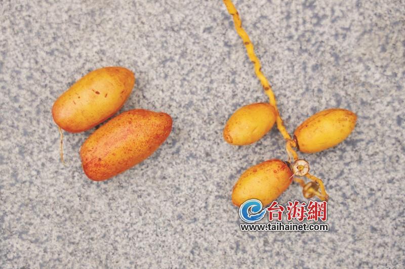 厦门街头结出国内最大椰枣 海枣树通过人工授粉结出甜味果实