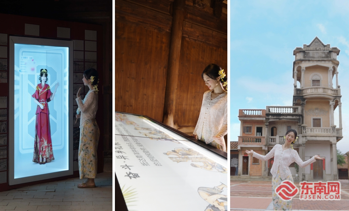 “梧林拾光”项目实景体验(项目方供图) 数字赋能 让文物故事“活”起来 “梧林拾光”项目重新打造了梧林枪楼(修养楼)、太兴厝、德养宅、尾厝四座古建筑空间,以“科技赋能文化、创新传承文明”为理念,为古村落注入澎湃动能。在太兴厝“数智福坊”,3D Mapping技术让明代百福墙纹饰跃动生辉,清代福叠龙凤碑动态投影重现历史脉络,小娘惹数字人与游客亲切互动。德养宅“行浸式体验空间”运用全息影像技术和裸眼3D技术,复原闽南市井、南洋商埠场景,游客可穿梭时空,感受“下南洋”历史画卷的独特魅力。 这些创新展陈充分利用前沿数智科技,既保护了古厝建筑本体,又让文物故事“活”起来。