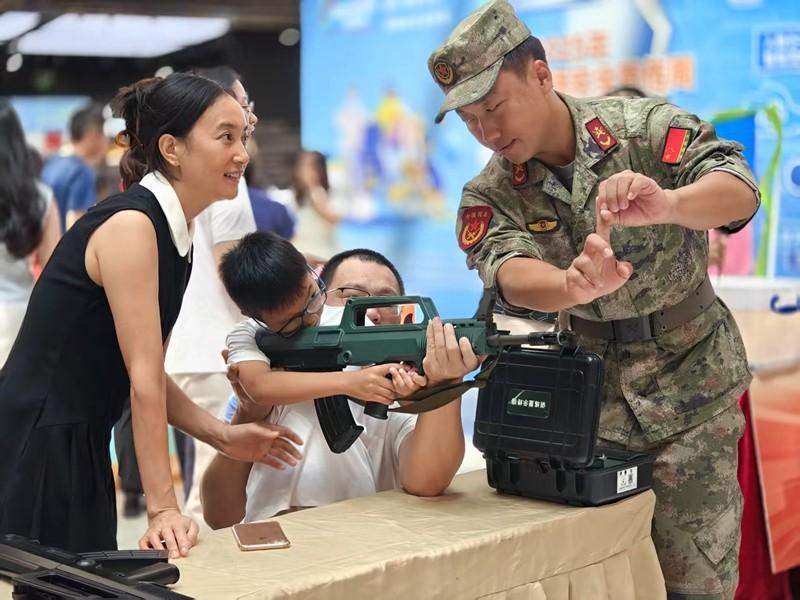 “全民国防教育月”主题活动中,孩子体验模拟射击,感受家国情怀。(许晓霞 摄) 9月21日,集美iOi MALL一楼中庭变身成“国防互动课堂”现场,2025年集美区“全民国防教育月”主题活动在这里热闹开展。活动以“弘扬抗战精神 共筑国防长城”为主题,通过趣味体验、知识问答、手工制作等丰富形式,让居民在“家门口”轻松学习国防知识、感受家国情怀。 现场设置了多个互动体验区。沉浸式的模拟射击体验区,让体验者在热血沸腾中感受家国情怀。国防知识互动区“歼-20战机”“99A主战坦克”“山东舰航母”等大国重器的图文介绍,让大家在互动问答中知道中国高科技国防力量。温馨的打卡区域同样人气高涨——“我对国防说句话”留言墙上写满了市民对国防建设的真诚寄语。大家纷纷将活动照片分享至社交平台,集赞后体验国防主题非遗漆扇DIY,亲手绘制战机、长城等图案,把传统技艺与家国情怀一同带回家。 “我长大了也想当兵。”今年11岁的陈祥灏在兵哥哥的专业指导下,激动地体验了模拟射击。他从小就和军事爱好者爸爸共同阅读相关书籍,对中国武器十分熟悉。“今天看到了很多中国研发出来的武器,感受到了我们强大的国防力量!”陈祥灏激动地说。(记者 许晓霞 来源:集美报) |