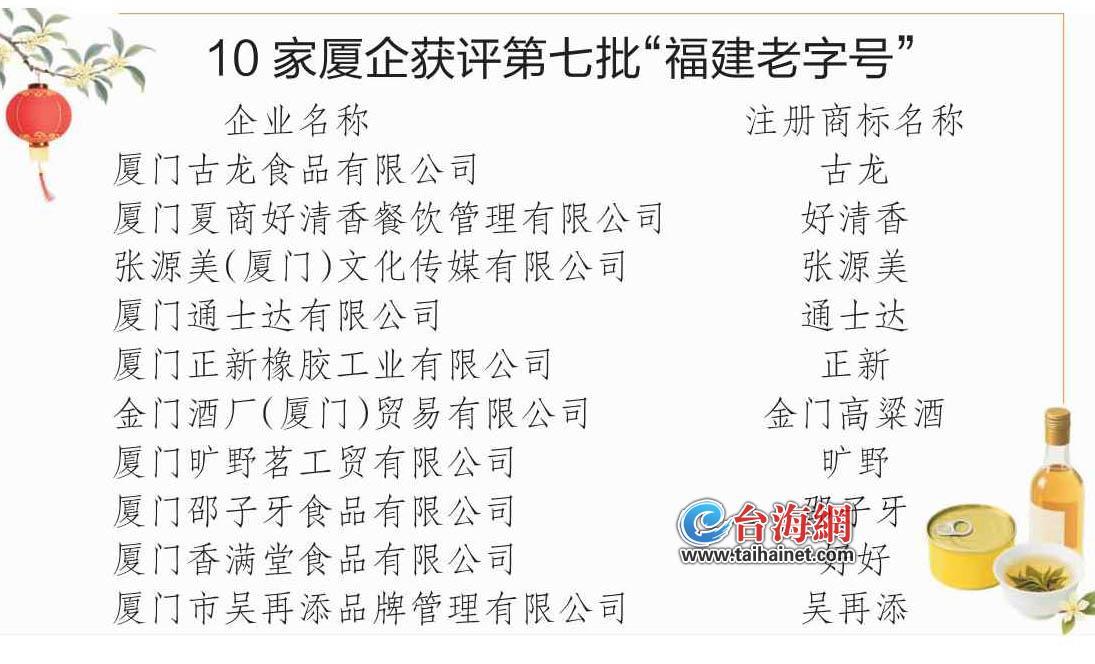 厦门再添10家福建老字号 全市各类老字号达到174家