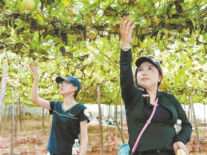 学生来到百香果园体验现场采摘的乐趣。 厦门日报讯(文/记者 吴晓菁 图/记者 卢建豪)秋分时节,厦门的田野间热度不减,但比气温更炽热的,是2025年厦门市中国农民丰收节主会场——同安区五显镇三秀山村的“丰收经济”。昨日,以“庆农业丰收・享美好生活”为主题的2025年厦门市中国农民丰收节主会场活动,在此拉开帷幕。现场不仅是农特产品的展销会,更成为观察厦门现代农业产业链延伸、城乡消费互动与两岸农业融合的一扇窗口。 从“丰产”到“丰收入” 产销直通破解“甜蜜的烦恼” 丰收,既要看产量,更要看产值。在翔安区大宅社区一位果农看来,“产量高不代表真正的丰收,卖得出、卖得好、卖得俏,才是实实在在的丰收。” 今年,厦门水稻播种面积与产量双双创下近年新高,近期火龙果、葡萄等特色水果也陆续成熟上市。在此背景下,如何将“田间的丰收”转化为“手中的收益”,成为关键所在。 丰收节主会场设立的“一村一品”丰收大集,正是破解这一“甜蜜烦恼”的直通渠道。近50家摊位一字排开,山药、芋头等来自厦门岛外四区的特色农产品琳琅满目、整齐陈列,实现了从“田间”到“舌尖”的无缝对接。 风铃谷家庭农场负责人周夏怡的摊位前格外热闹,芒果凤梨与红香菠萝很快供不应求。“赶紧组织人现摘,多装几箱送来……”她一边补货,一边向围拢的人介绍起农场:“我们农场在四林村,占地130多亩,种了上百种菠萝、凤梨,今天带来的红香菠萝是马来西亚品种,带红皮、有奶香,芒果凤梨甜味足、口感清淡。” 谈及丰收节,她擦汗笑道:“这平台特别好,平时在田里忙,难得和客人面对面,大家愿意买,就是对我们的认可。”话音刚落,农场工人便送来了补摘的菠萝,摊位热闹更甚。 市民朱女士一家专程从岛内自驾前来,试吃后当即下单两颗凤梨,“品质好、价格实在,既买到好产品,也直接支持了农户。” 连日来,厦门还多措并举将龙眼丰产压力转化为增收实效。邀请北上广等多地客商前来考察采购,现场签约超4600吨;组织种植大户对接北京新发地等批发商,促成“同安凤梨穗”龙眼首次进入北京市场;提升厦门农发同芯公司产能,每日烘焙干果可达12吨;通过网络达人直播带货,扩大线上销售;结合“厦乡趣”农文旅平台开展龙眼采摘、快闪销售等活动,有效提升龙眼销量。 |