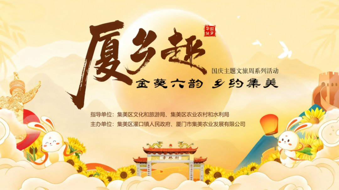 秋风送爽,丹桂飘香,国庆佳节如约而至。10 月 1 日至 6 日,集美区李林村将迎来 “厦乡趣”——“金葵六韵,乡约集美” 主题文旅周。本次活动由集美区文化和旅游局、集美区农业农村和水利局指导,集美区灌口镇人民政府与厦门市集美农业发展有限公司主办。集美农发公司诚邀您前来,在丰富活动中领略闽南文化魅力,邂逅乡村的宁静与美好。