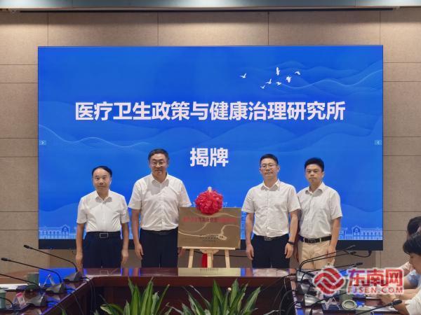 医疗卫生政策与健康治理研究所揭牌(东南网记者 刘玮 摄) 东南网10月1日讯(本网记者 刘玮)为进一步深化院校合作,推动厦门医疗卫生事业创新发展,9月29日,“校院协同·赋能健康事业高质量发展”揭牌仪式在厦门大学颂恩楼举行,仪式由厦门大学、厦门市疾病预防控制中心、厦门市杏林医院联合举办。会上,医疗卫生政策与健康治理研究所、厦门市公共卫生与健康研究院、超智医疗创新研究中心三个健康研究机构正式成立。 会议共吸引了百余名专家及相关人士齐聚鹭岛,共襄学术盛举。厦门大学校党委常委、副校长方颖,厦门市疾病预防控制中心、厦门市杏林医院及相关学院负责人依次为三个研究机构揭牌。据悉,三个研究机构将整合厦门大学、厦门市疾病预防控制中心、厦门市杏林医院三方优势资源,从政策到公卫、从科研到临床、从治理到技术,构建起一个多维度、立体化的健康服务与创新研究体系。