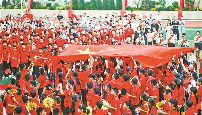 昨日上午,厦门市火炬学校师生到校参加国庆升旗仪式。(记者 林铭鸿 摄)