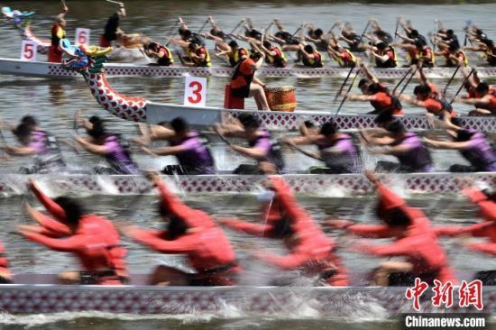 5月17日,参赛队伍在第十八届“嘉庚杯”“敬贤杯”海峡两岸龙舟赛中角逐。中新社记者 张斌 摄 海峡两岸龙舟赛发源于爱国侨领陈嘉庚倡导并发起的集美龙舟赛。今年年初,嘉庚教育遗产被列入中国世界文化遗产预备名单,龙舟赛是嘉庚教育遗产申遗的重要组成部分。