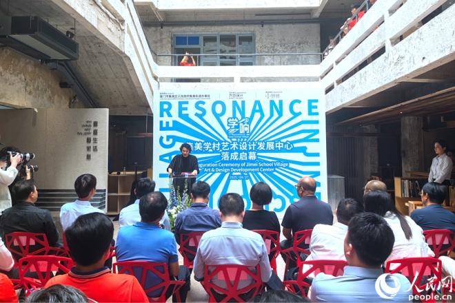 活动现场。人民网 余乃鎏摄 “在学村的空间地理之‘心’,用面向未来的设计‘心念’,去连接回应集美学村的内在发展宏音。”主办方介绍,在焕新艺术空间过程中,主要通过表皮的刮削去除“法”的森严表情,用“多元场景共生”去容纳新的艺术表情、设计事件和生活场景,并通过新时代的设计重构,实现在产业路径、生活情景上,向集美学村保有的“大设计”遗产发出当下的回响……“不仅是空间的物理性变化,更是一次与城市产业发展战略高度契合、与本土文脉遗产接续高度同频的‘文化转译’。” 据介绍,该中心将以“艺术+设计”为内核,从空间更新迈向产业的“振兴”,重点打造三大平台功能:汇聚全球顶尖设计师与艺术家,通过国际展览、设计节与论坛,推动集美与世界的深度对话;联合高校与企业共建实训基地,培育跨界创新的新生力量;以石鼓路为轴心,用艺术重塑街巷空间,让城市实现“艺术即生活”的浸润式新风貌。