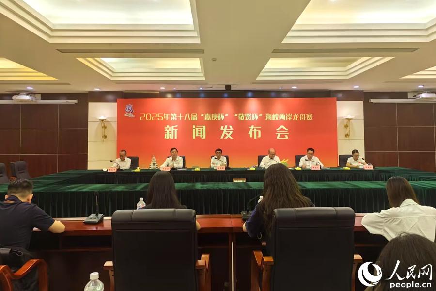 发布会现场。人民网 余乃鎏摄 据悉,海峡两岸同宗同源,有着一脉相承的文化传统,端午习俗与龙舟赛事在海峡两岸都有着悠久的历史和广泛的群众基础。为加强海峡两岸的文化交流、打造集美特色的两岸文化交流平台,集美区于2006年举办首届“嘉庚杯”“敬贤杯”海峡两岸龙舟赛,在大力弘扬陈嘉庚先生爱国爱乡、倾资兴学的精神的同时,以两岸的民俗文化交流为载体,进一步密切海峡两岸同胞的血脉联系,增进台湾同胞的祖国认同感;2008年,海峡两岸龙舟赛升格为国家级赛事,纳入国家体育总局社会体育指导中心和中国龙舟协会的年度赛事计划;2010年被国台办确定为海峡两岸文化交流重要项目;2011年升格为海峡两岸(集美)龙舟文化节;2017年正式纳入海峡论坛,成为海峡论坛期间首场重要文化交流活动;2021至2023年,连续三年被国家体育总局文化发展中心评为“中华体育文化优秀民俗民间项目”。 “历经多年发展,海峡两岸龙舟赛渐成体系,不仅成为弘扬嘉庚精神、文体旅融合的品牌活动,还成为密切海峡两岸民众心灵契合、增进两岸同胞文化认同的重要平台。”发布会上,集美区委常委、宣传部部长庄志辉介绍,第十八届龙舟赛主题为“龙舟集美行,两岸一家亲”,将设置22人龙舟200米和500米直道赛两个项目,分为社会男子组和女子组、青少年男子组和女子组四个组别,共有36支队伍(大陆27支、台湾9支)参赛,同时邀请了4位来自台湾地区的裁判长参与赛事执裁工作。