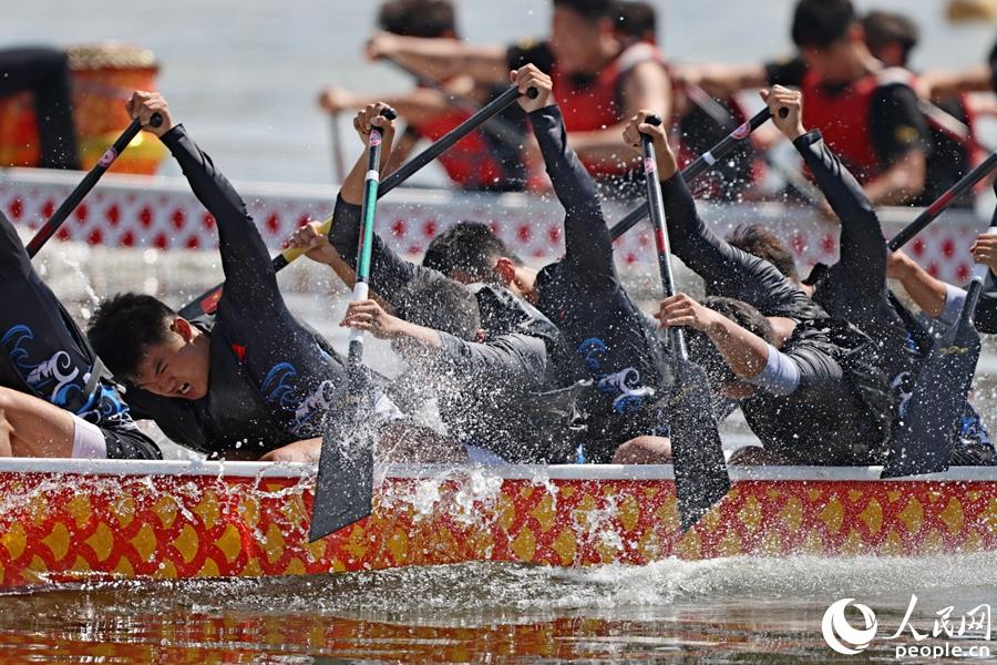 青少年女子组200米直道竞速赛。人民网记者 陈博摄 今年恰逢集美大学龙舟队组队十周年。在当天上午的200米直道决赛中,集美大学龙舟队男队、女队双双位居青少年男子组、女子组榜首。“作为东道主,队伍经常在这里训练比赛,对水域、场地比较熟悉,有很大的主场优势。”集美大学龙舟男队队长洪同学介绍,龙舟赛是学校一项历史悠久的传统体育活动,去年队伍获得了青少年组别总决赛冠军,这次无论男队、女队在备赛期间都下了一番功夫,为的就是夺得更好的成绩,“希望能在总决赛中卫冕”。